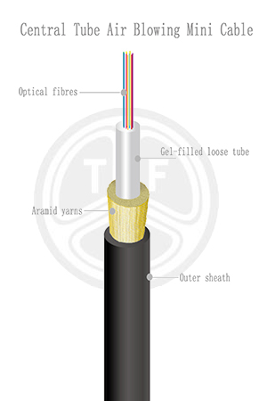 and covered with a layer of aramid yarn as strength member. The cable is completed with an outer sheath.