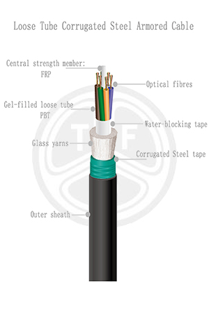 and wrapped with a layer of corrugated Steel tape longitudinally. The cable is completed with a PE outer sheath.