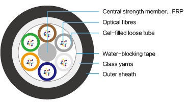 fibre reinforce plastic locates in the center of core as a non-metallic strength member. The tubes (and the