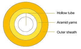 The fanout tube wrapped with a layer of aramid yarn as strength member, and the cable is completed with an outer sheath.