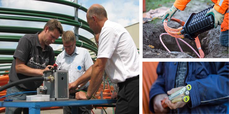 as micro tubes, multi tube cable, tube connector, optical fibre splice closure, route survey, air-blowing